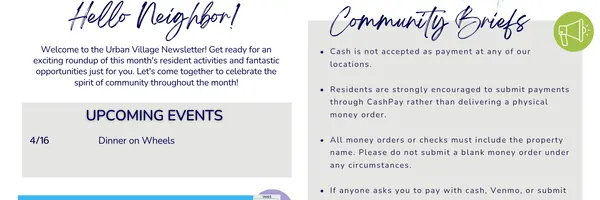 Whether you're a current resident or an interested prospect, we want to make it easy to understand what your rent includes and what may constitute additional fees. To help with this, we've created a fee list below so you can quickly see what fees may apply in addition to your base rent.